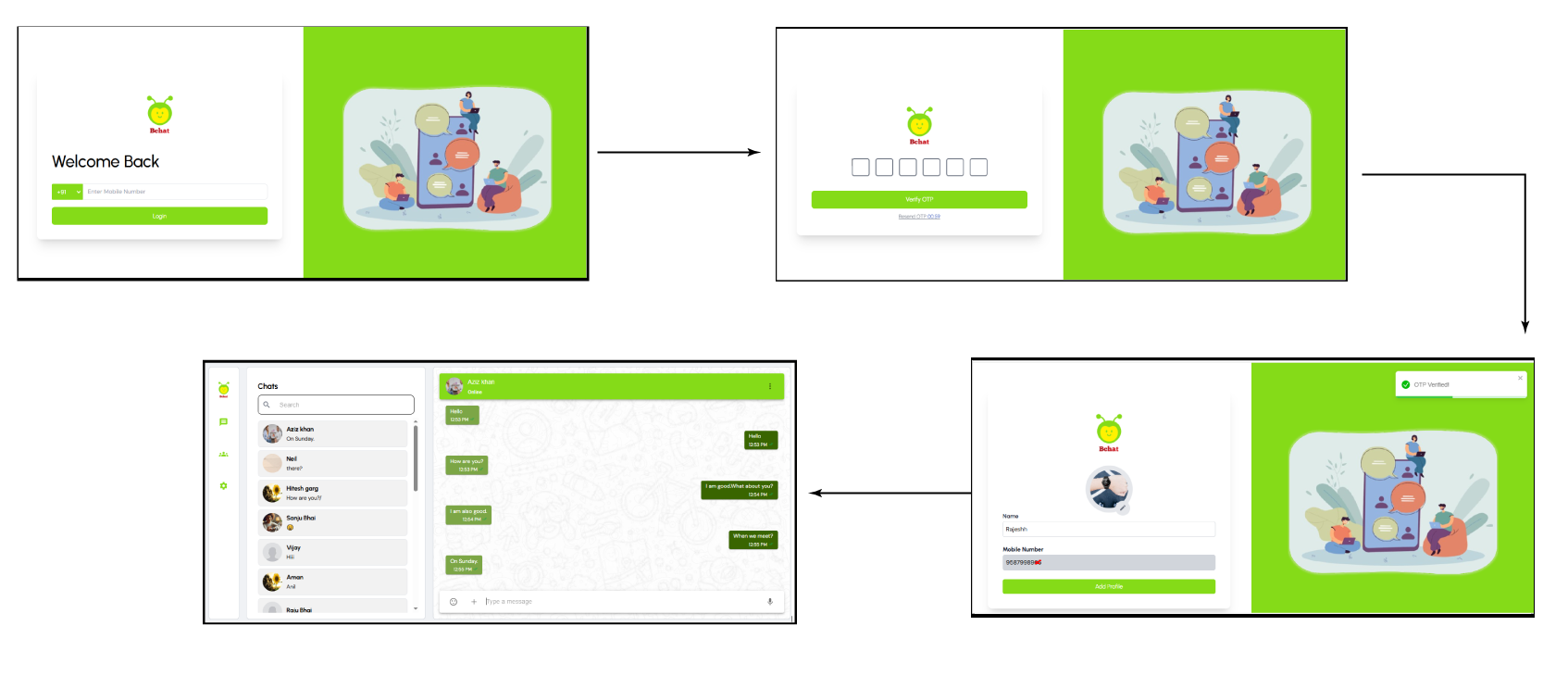 BChat is a web and mobile cross-platform chat application designed to offer secure and smooth communication between web and mobile environments. Developed to support individual users and organizations, BChat enables real-time communication with enhanced messaging, media sharing, voice/video calling, group chat features, and role-based admin features. The application focuses on user privacy and control of communication, making it ideal for both casual and enterprise-level communication requirements.